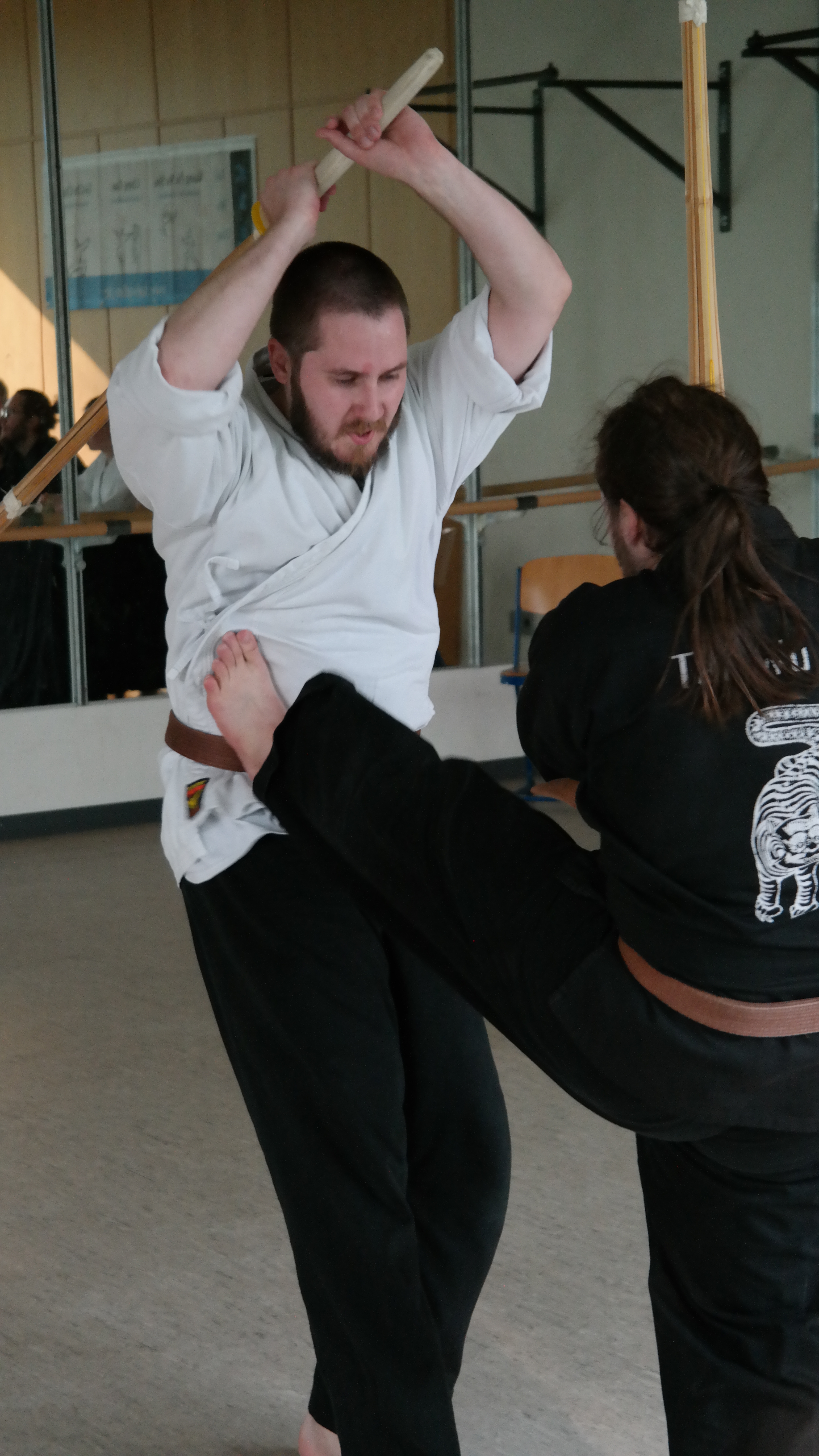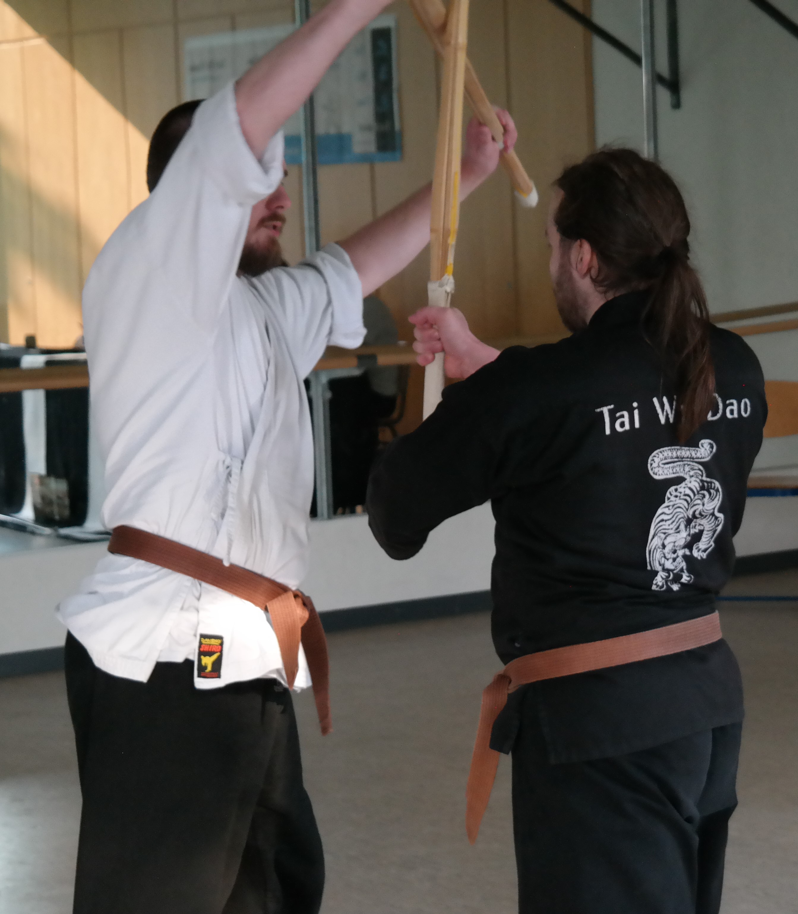 Geübt wird mit dem Holzschwert. Erst auf fortgeschrittener Stufe werden einzelne Übungen mit dem Metallschwert und dem Säbel ausgeführt.